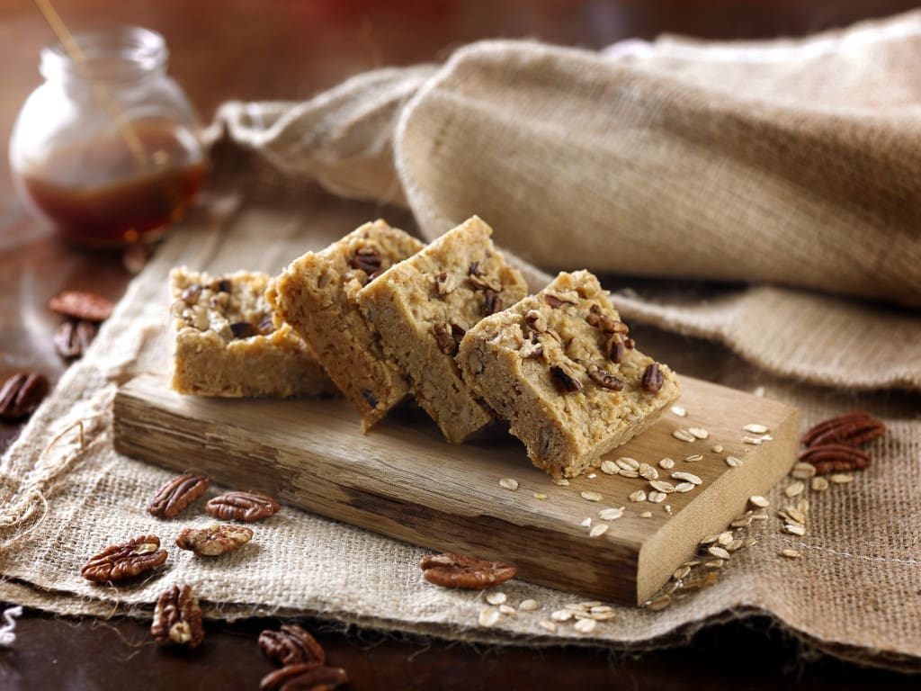 Handmade gluten free vegan maple pecan flapjack, perfect as a wholesome, tasty traybake for cafes and catering. Packed with flavour in 15 portions.