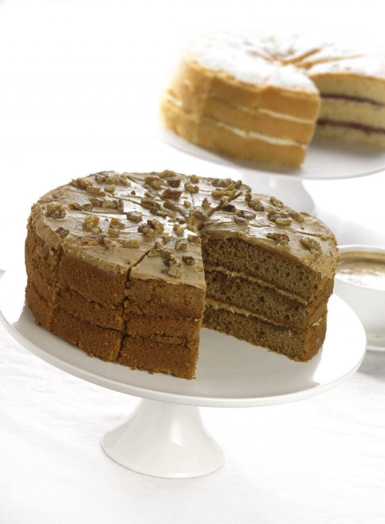 Handmade triple coffee walnut cake offers a rich coffee sponge with smooth fudge icing and crunchy walnuts. Supplied in 14 portions, ideal for dessert menus or teatime.