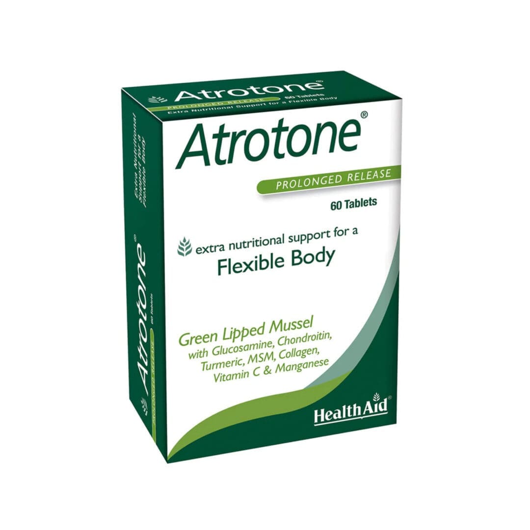 Health Aid Atrotone 60 tablets enhance joint suppleness and maintain elasticity of tendons and connective tissues. A valuable addition to your wellness range.