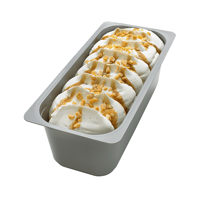 Kellys Honeycomb Caramel Ice Cream 4.5L offers a creamy caramel base with crunchy honeycomb pieces, perfect for a tempting dessert or milkshake addition.