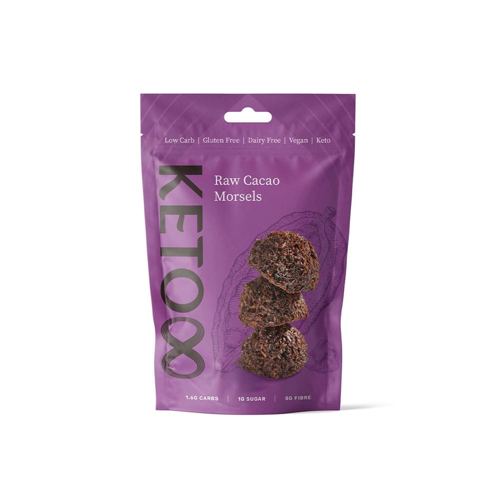 Keto 8 Raw Cacao Morsels are a low carb, chocolatey snack featuring coconut, vanilla, and sea salt. Ideal for energy boosts or keto-inspired menus. Available in 6x120g packs.