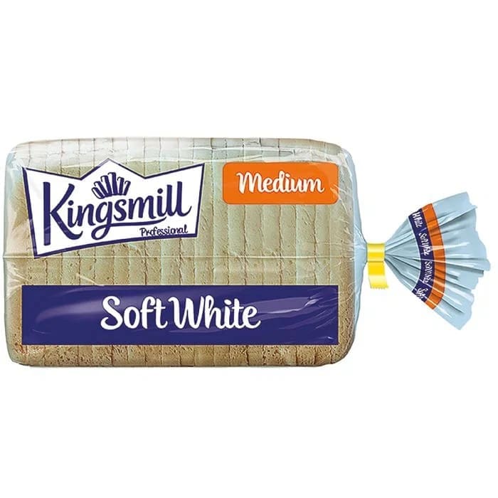 Kingsmill Soft White Medium Loaf 18+2 pack features fresh, soft sliced white bread, perfect for sandwiches and catering. Each loaf weighs 800g.