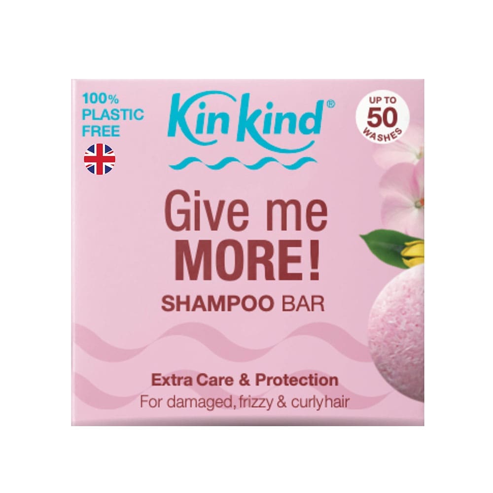 KinKind Give Me More! Shampoo Bar 50g delivers gentle nourishment and strengthens fine, flat hair. Convenient solid form ideal for professional use and travel.