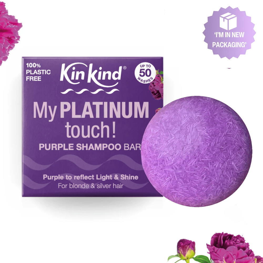 KinKind My Platinum Touch Purple Shampoo Bar 50g refreshes blonde and silver hair by neutralising brassiness. A sustainable, toning shampoo bar ideal for daily use.