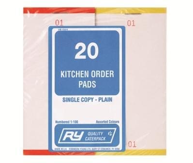 Durable kitchen order pads designed to streamline order taking. Ideal for busy restaurants and cafés to ensure clear, accurate communication in every order.