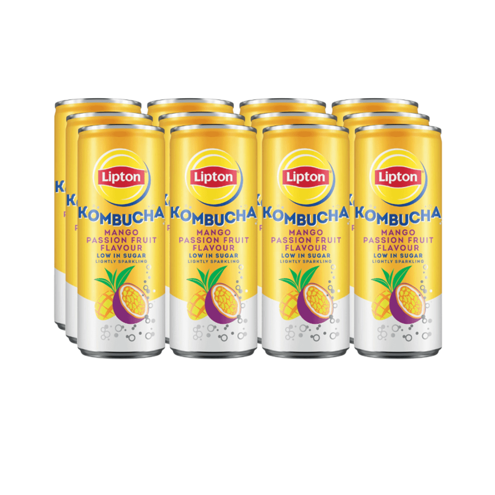 Lipton Kombucha Mango & Passionfruit offers a sparkling, fruity boost in 12x250ml bottles, ideal for refreshment alongside light meals in professional settings.