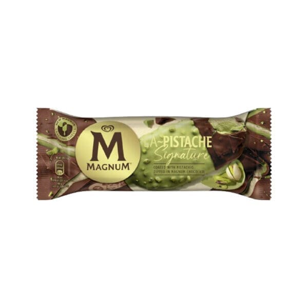 Reconstituted skimmed MILK, sugar, vegetable fats (coconut, shea), glucose syrup, water, whole MILK powder, PISTACHIO paste (2.5%), skimmed MILK powder, fructose, PISTACHIOS (1%), cocoa butter¹, cocoa mass¹, emulsifiers (E471, lecithins), whey solids (MILK), caramelised sugar syrup, butter fat (MILK), stabilisers (E412, E417, E410, E407), salt, flavourings, colour (E141).