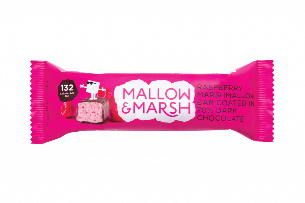 The Mallow & Marsh Raspberry Bar blends fresh raspberry marshmallow with a rich 70% dark chocolate coating. Ideal for an indulgent, fruity treat in 12x35g packs.