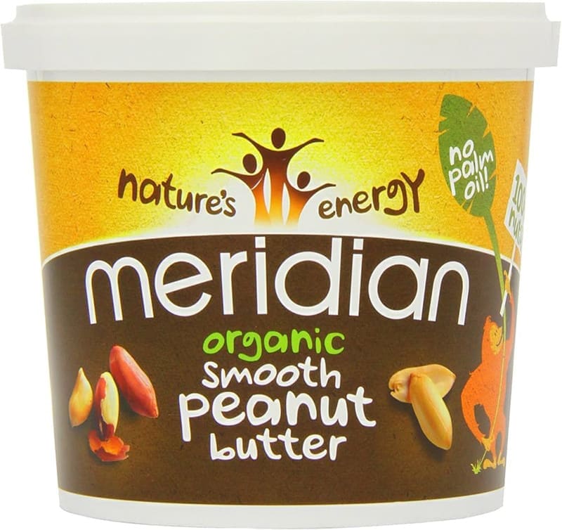 Meridian Organic 100% Smooth Peanut Butter in a 280g jar, perfect for spreading, baking and cooking with authentic organic peanut taste.