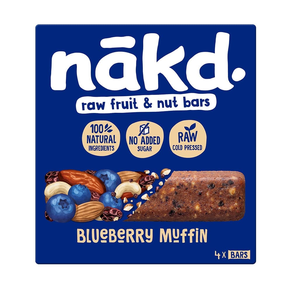 Nakd Blueberry Muffin Multipack offers natural, gluten-free bars made solely from fruits and nuts, perfect for a nutritious snack or quick energy on the move.