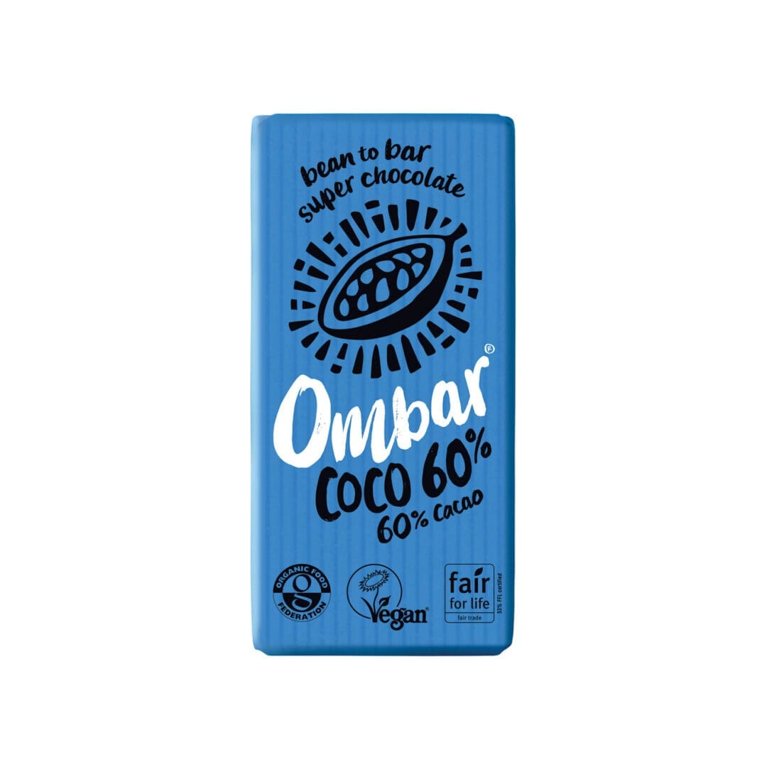 Ombar Organic Coconut 60% raw chocolate bars, 10x35g per pack. Rich and natural, perfect for fine confectionery or premium snacks.