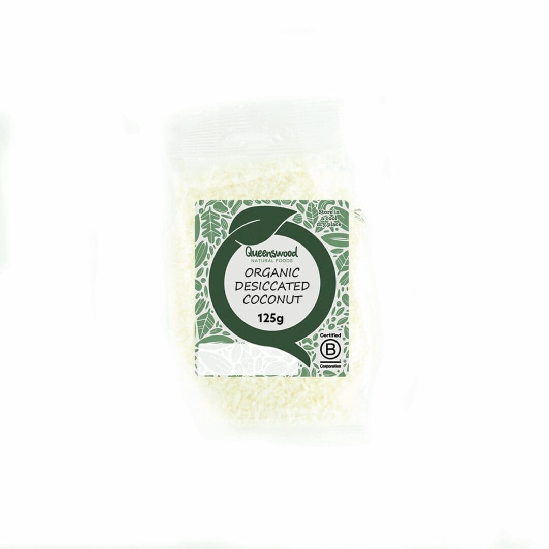 Premium Organic Desiccated Coconut in 5x125g packs. Ideal for baking, cooking, and garnishing with a natural, rich nut flavour.
