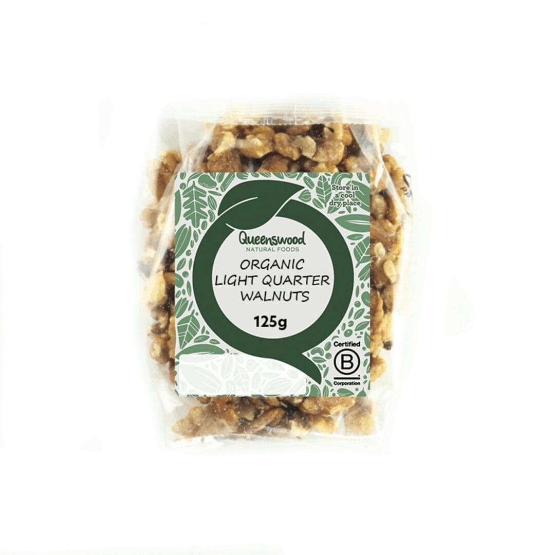 Organic Light Quarter Walnuts in 5x125g packs, ideal for enhancing recipes with natural flavour and texture. Reliable supply for professional kitchens.