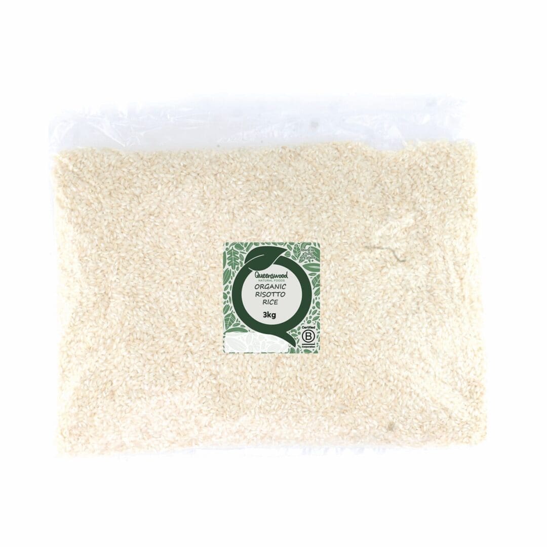 Organic Arborio risotto rice in 3kg packs, ideal for creamy Italian dishes. Perfect for restaurants seeking quality grains with great flavour absorption.