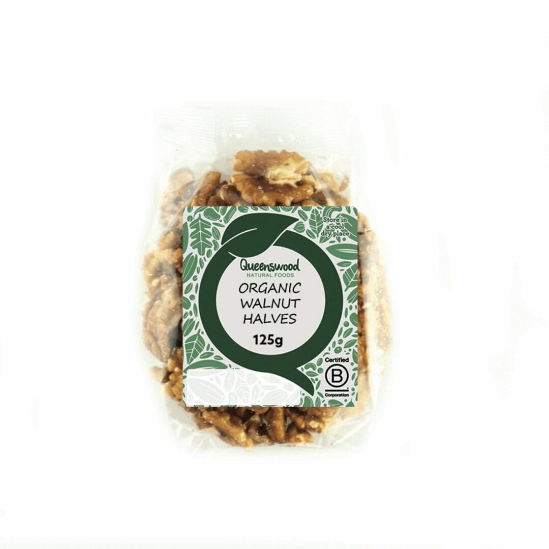 Premium Organic Walnut Halves in 5x125g packs, perfect for baking, salads, or snacking. Nutritious and fresh organic nuts for professional kitchens.