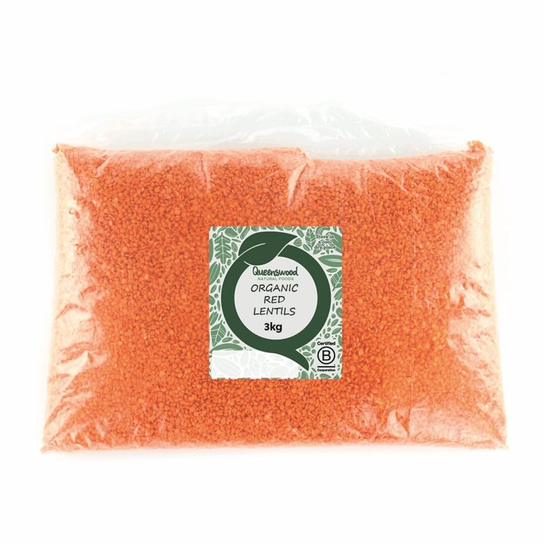 Organic Red Split Lentils in 3kg packs offer quick cooking and rich flavour. Ideal for soups, dals, and hearty plant-based meals.