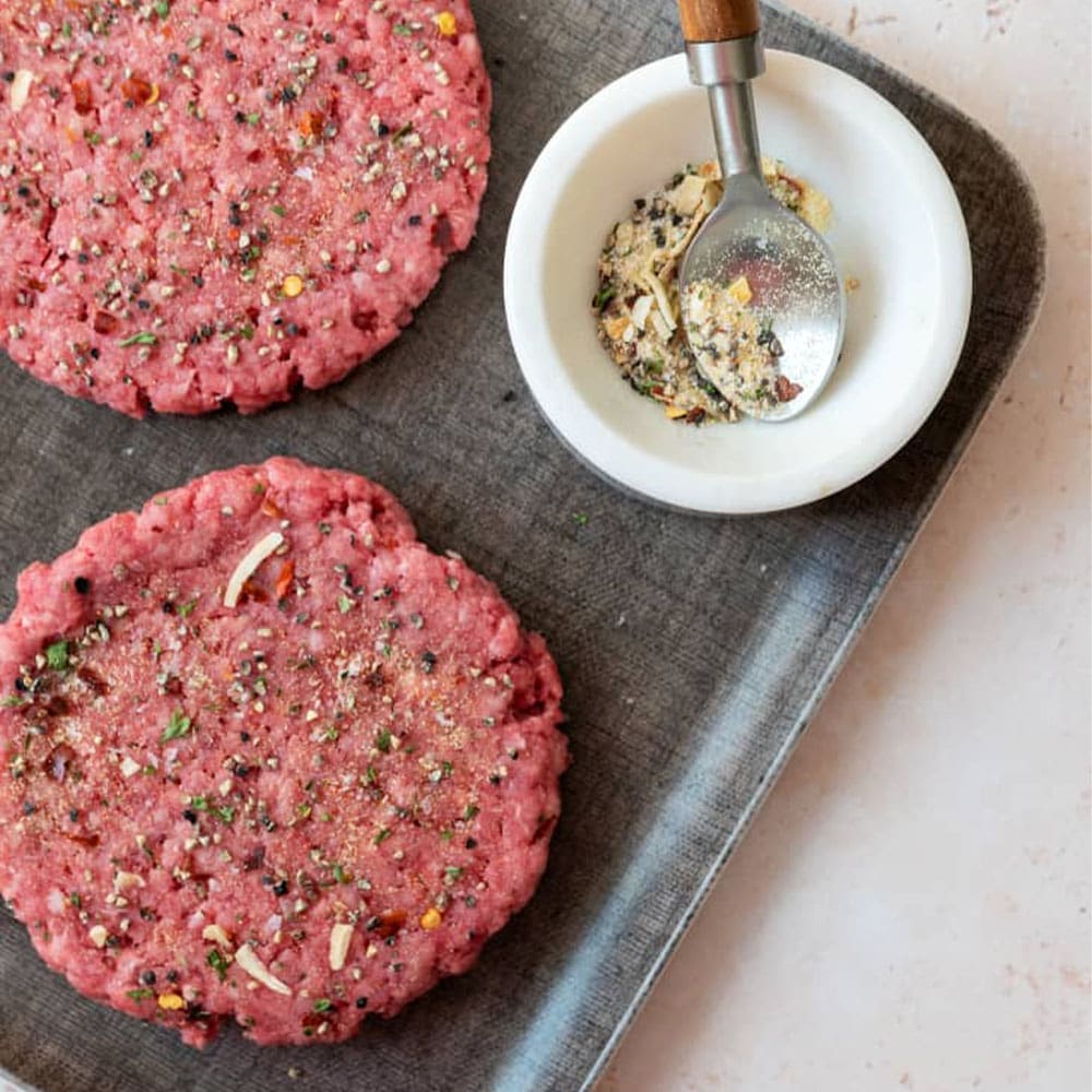 Frozen Pennylane American Seasoned 4oz Burgers, portion controlled at 113g each. Perfect for quick preparation and authentic flavour.