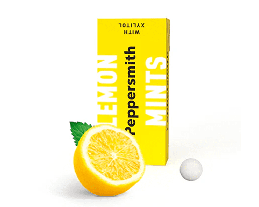 xylitol (oats), stabilisers: calcium stearate†, sodium carboxymethylcellulose; thickener: gum arabic, lemon oil, peppermint oil, glazing agent: carnauba wax