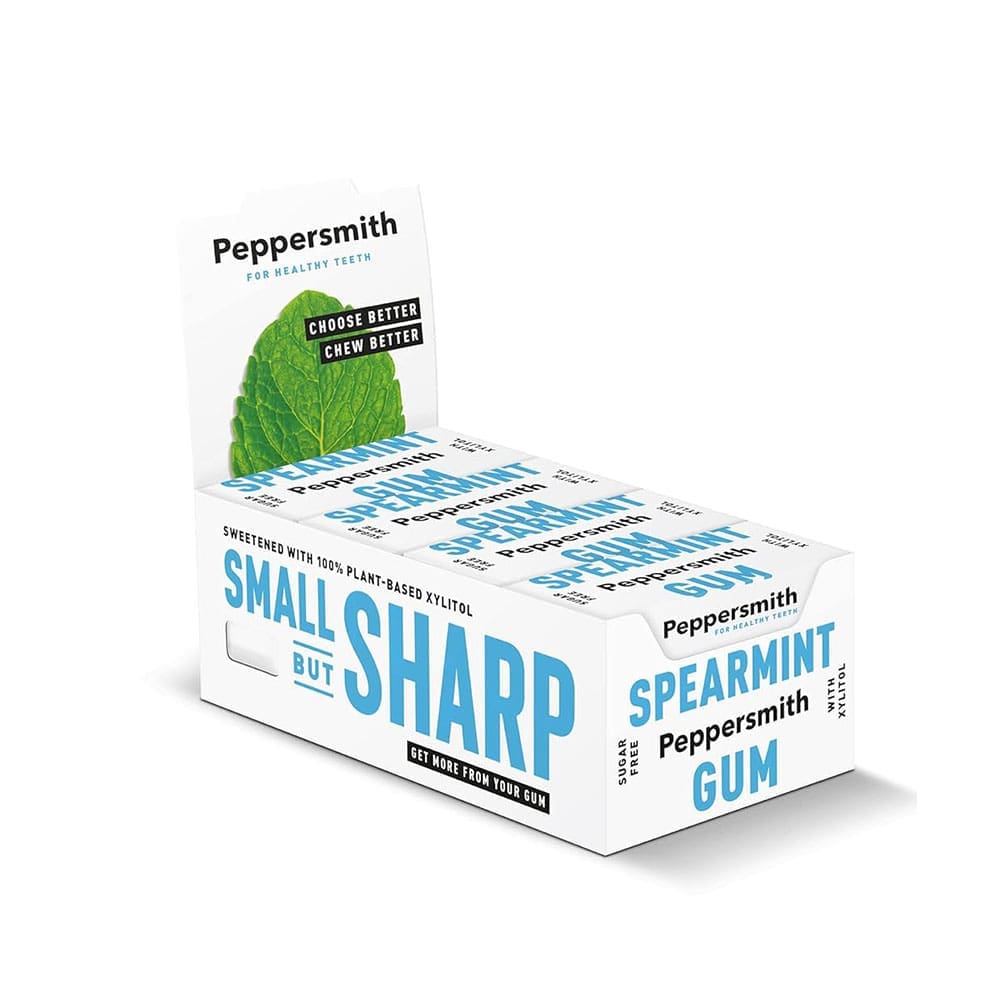 xylitol (oats), gum base, spearmint oil, natural menthol, natural mint, thickener: gum arabic, emulsifier: lecithin, stabiliser: glycerol, glazing agent: carnauba wax.