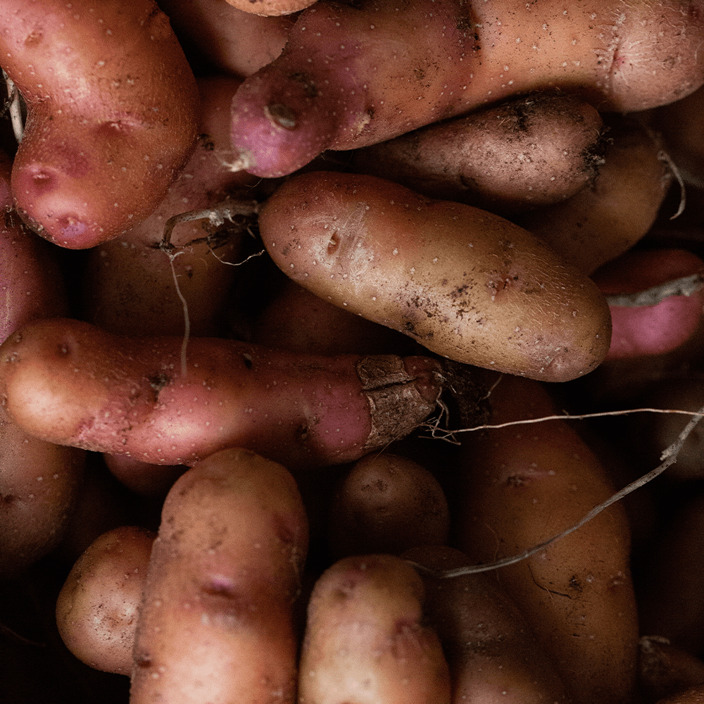 Fresh Pink Fir Potatoes in 1kg packs, delivering versatile and flavoursome results ideal for roasting, boiling or mashing in professional kitchens.