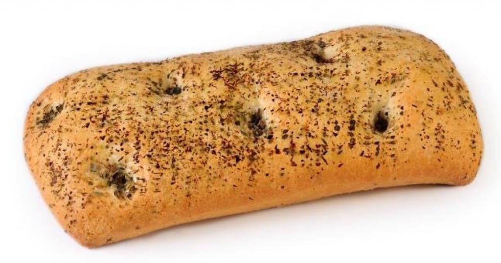 WHEAT flour, water, olive oil, sunflower oil, yeast, salt, WHEAT GLUTEN, rosemary 0.4%, sugar, malted WHEAT flour. Topping Herbs (Rosemary, savory, thyme, basil, marjoram).