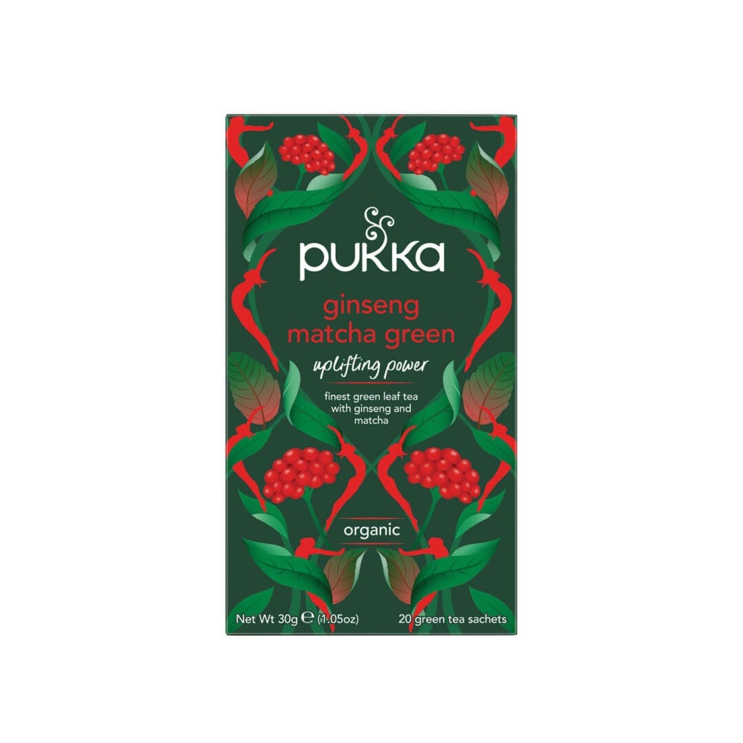 Pukka Organic Ginseng Matcha Green Tea blends energising ginseng with smooth matcha in convenient 4x20 bags. Ideal for both hot and iced presentations.
