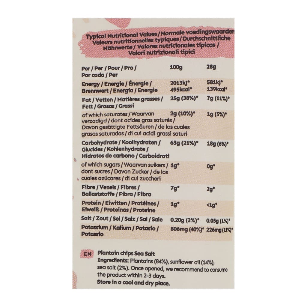 Plantains (84%), Sunflower Oil (14%), Sea Salt (2%)