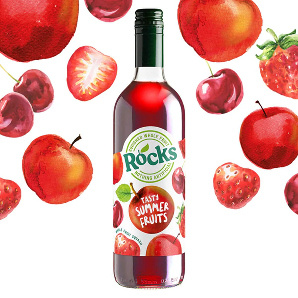 Rocks Spring Water, Cane Sugar, Fruit Juices from Concentrate (Apple 3.3%, Blackcurrant 3.3%, Strawberry 0.5%, Cherry, Red Grape), Citric Acid, Natural Flavourings