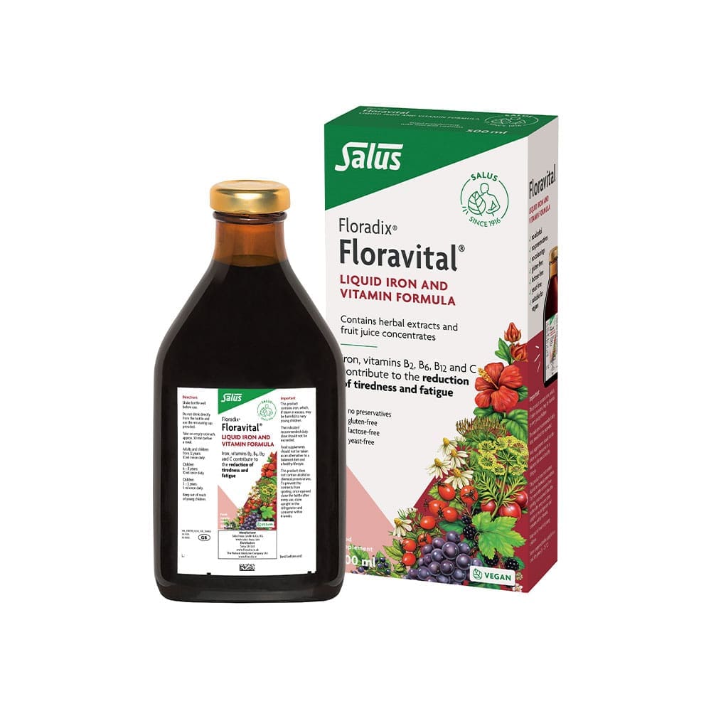 Salus Floravital Yeast Free 500ml provides a gentle iron supplement enriched with B vitamins and vitamin C to enhance energy levels and wellbeing.