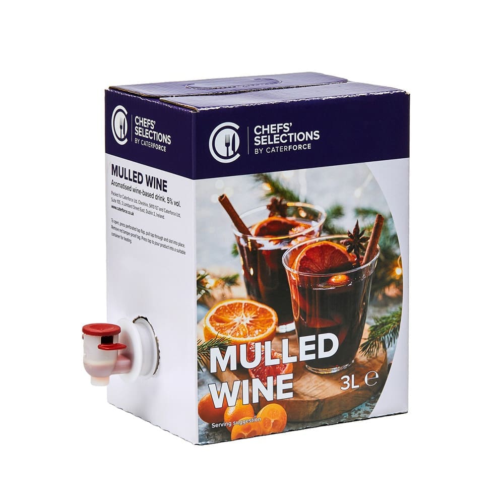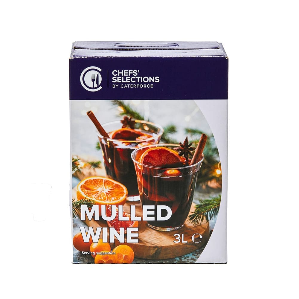 Chefs' Selections Mulled Wine is a spiced red wine in a 3L pack, ideal for warm festive drinks in hospitality settings.