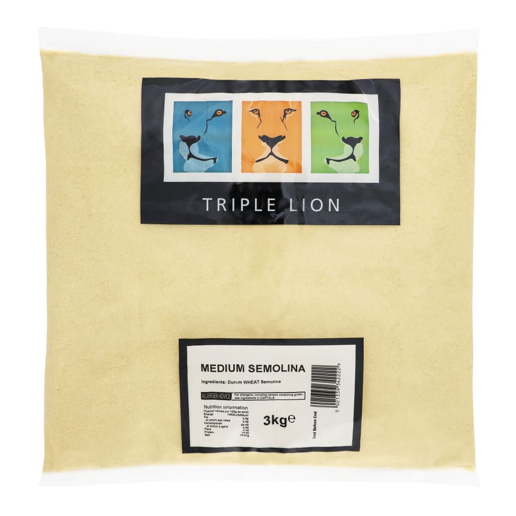 Triplelion semolina delivers premium texture to pizza, pasta, bread and biscuit mixes. Available in convenient 3kg packaging, ideal for professional kitchens.