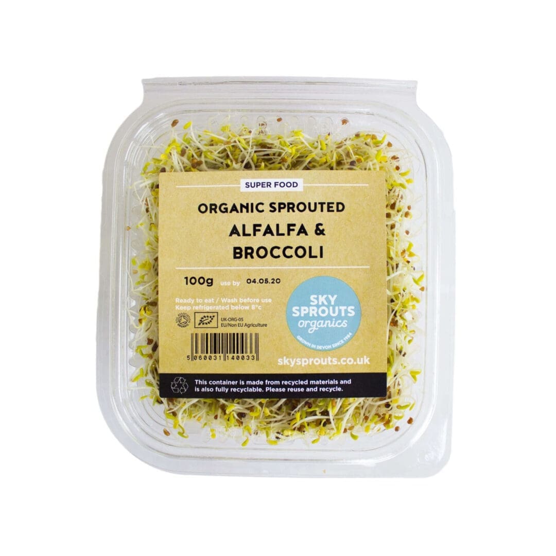 Sky Sprouts Organic Alfalfa and Broccoli Sprouts provide fresh, nutritious greens ideal for salads, sandwiches and garnishes. Supplied in a convenient 100g pack.
