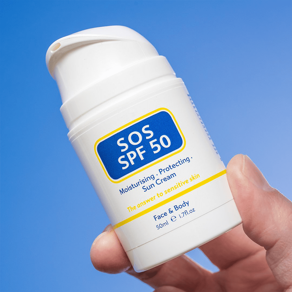 SOS SK SPF 50 Sun Cream provides high UVA and UVB defence with a lightweight, water-resistant formula. Perfect for protecting sensitive skin during long days.