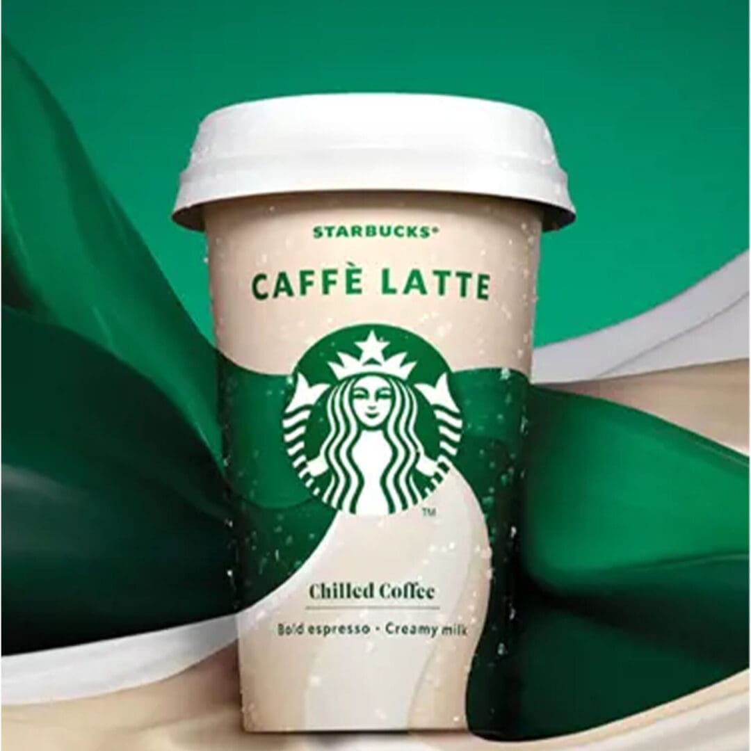 3.1% fat MILK (75%) Starbucks Arabica coffee (water, coffee extract) (19.2%), sugar (4.7%), chicory inulin, natural coffee flavouring, acidity regulator (potassium carbonate), emulsifiers (mono- and diglycerides of fatty acids of vegetable origin), stabilisers (carrageenan, guar gum).