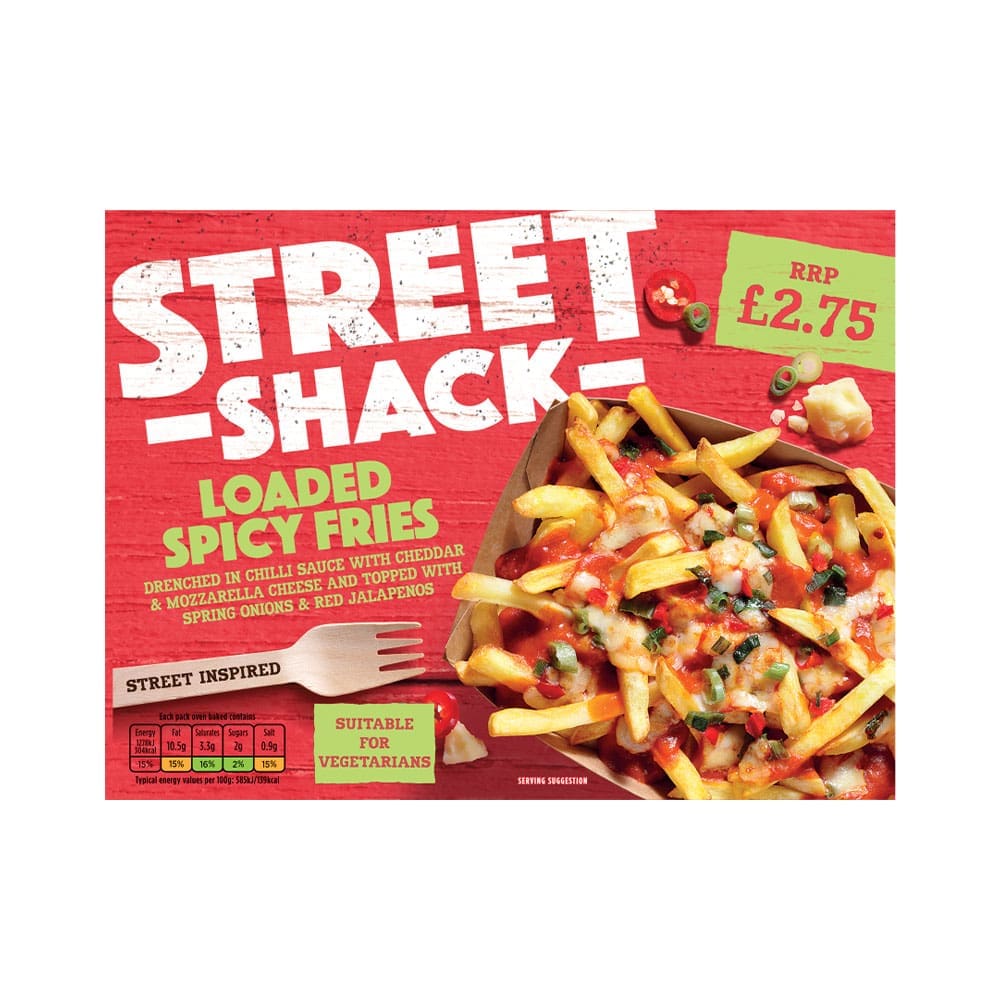Street Shack Loaded Spicy Fries PM £2.75 provide a bold, spicy flavour in convenient 8x250g packs. Perfect as a snack or side, ready to satisfy customers quickly.