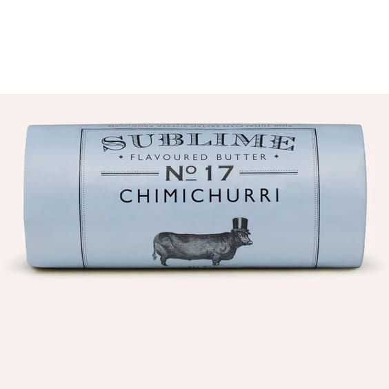 Sublime Butter No.17 Chimichurri is a rich flavoured butter infused with traditional herbs, ideal for enhancing meats, vegetables, and breads. Supplied in 10x90g packs.