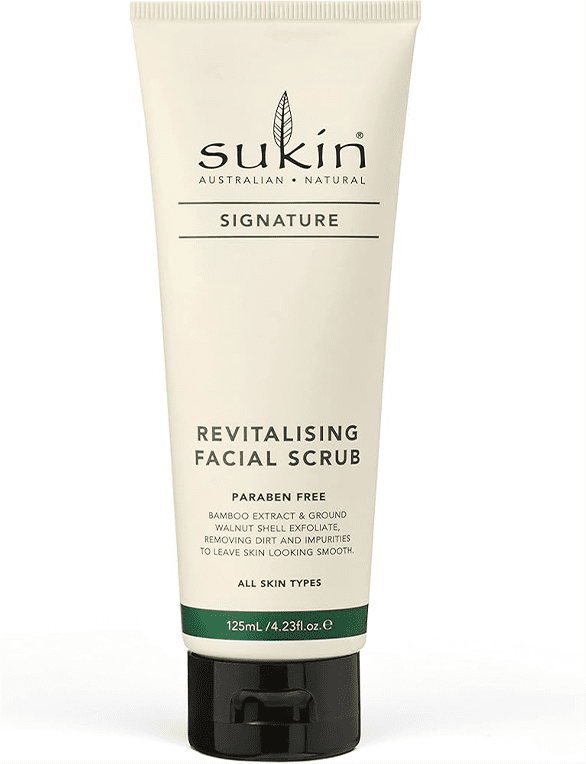 CLR Sukin Revitalising Facial Scrub gently exfoliates and hydrates normal to dry skin with Aloe Vera and natural oils. Ideal for a soft, smooth finish in professional settings.