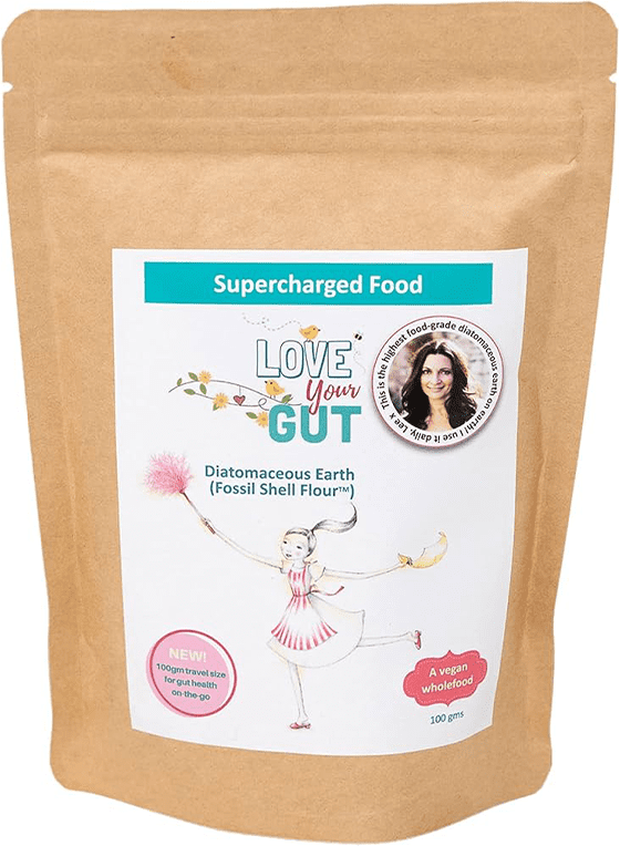 Supercharged Food Love Your Gut Diatomaceous Powder aids natural digestive wellness. Ideal for smoothies and salads, supplied in convenient 100g packs.
