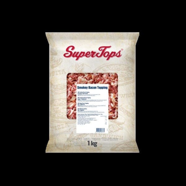 Supertops Smokey Bacon is a precooked, quick-frozen topping that adds authentic smokey flavour to pizzas and sandwiches. Supplied in convenient 1kg packs for easy use and consistent quality.