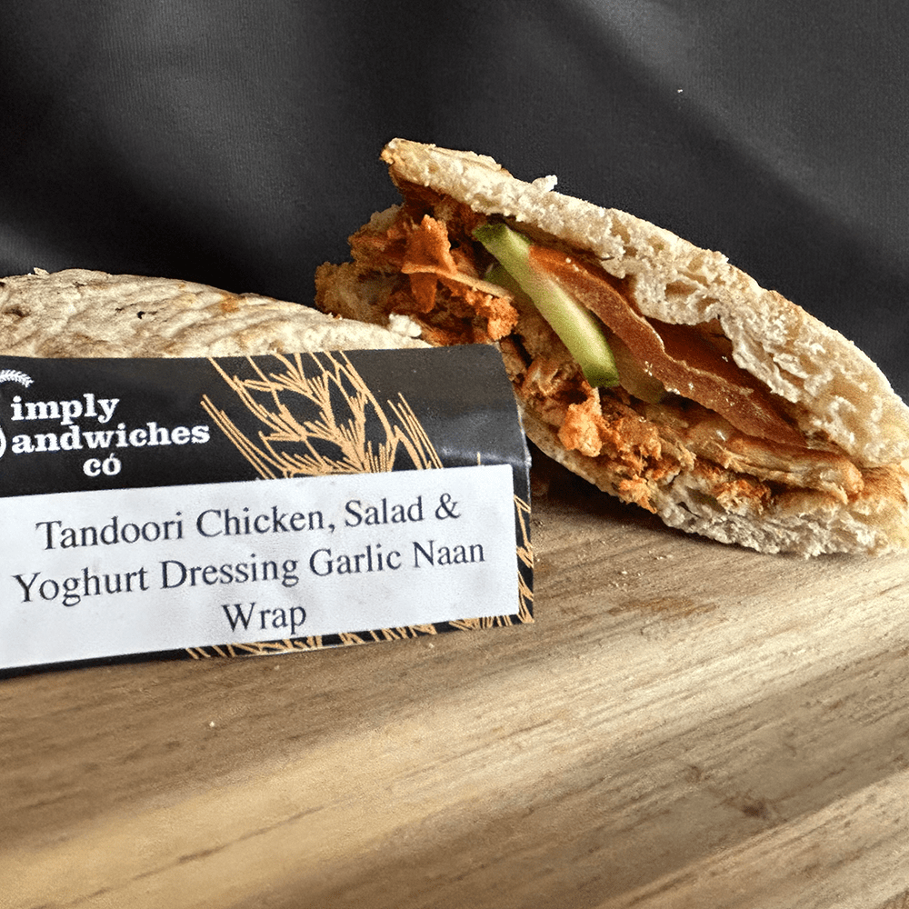 Tandoori Chicken Naan Wrap with fresh salad and yoghurt dressing. Ideal for quick meals or catering menus. Serve chilled or warmed with consistent quality.