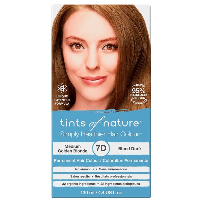 Tints of Nature 7D Medium Golden Blonde hair dye offers permanent, vibrant colour in a 130ml pack. Ideal for a natural, warm blonde finish.