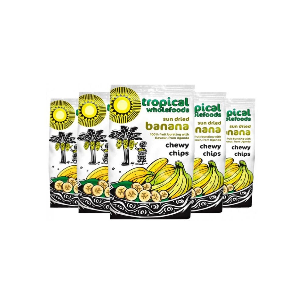 Tropical Wholefood Organic Dried Banana chips are 100% pure, additive-free, and hand-dried. Ideal for healthy snacking, bars, and cereals. Available in 6x150g packs.