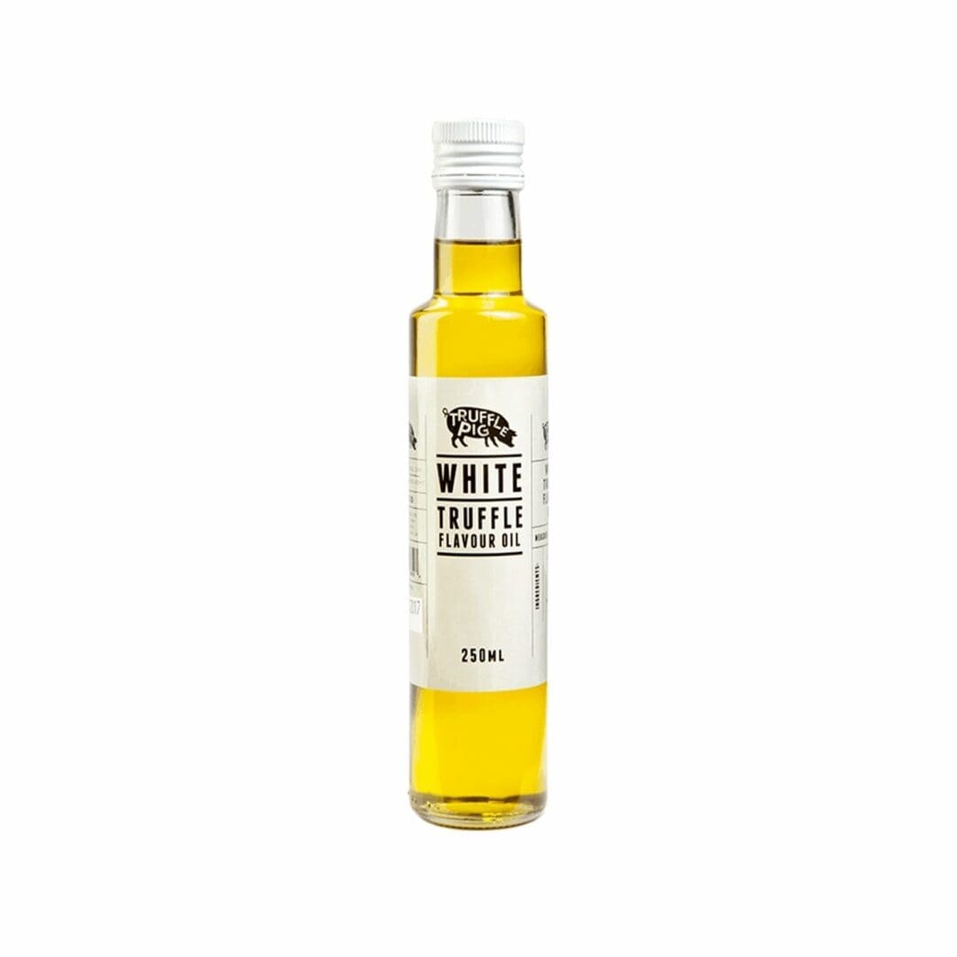 Truffle Pig White Truffle Oil 250ml adds a rich, delicate truffle flavour to salads, pasta, and grilled dishes. Perfect for an elegant finish.
