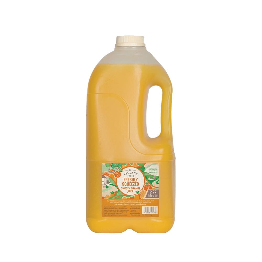Village Press Orange Juice is a smooth, 100% freshly squeezed juice from sun-ripened oranges, offered in convenient 2.27L packs ideal for professional menus.