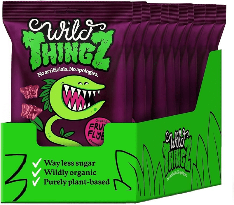 glucose syrup*, sugar*, gelling agent (pectins), acidity regulators (potassium tartrate, sodium tartrate), acid (citric acid), natural apple flavouring, natural orange flavouring, natural currant flavouring, fruit and plant concentrates* (apple*, carrot*, blackcurrant*, elderberry*), natural turmeric flavouring*, algae extract* (Spirulina platensis), glazing agent (carnauba wax*). *from supervised organic agriculture |