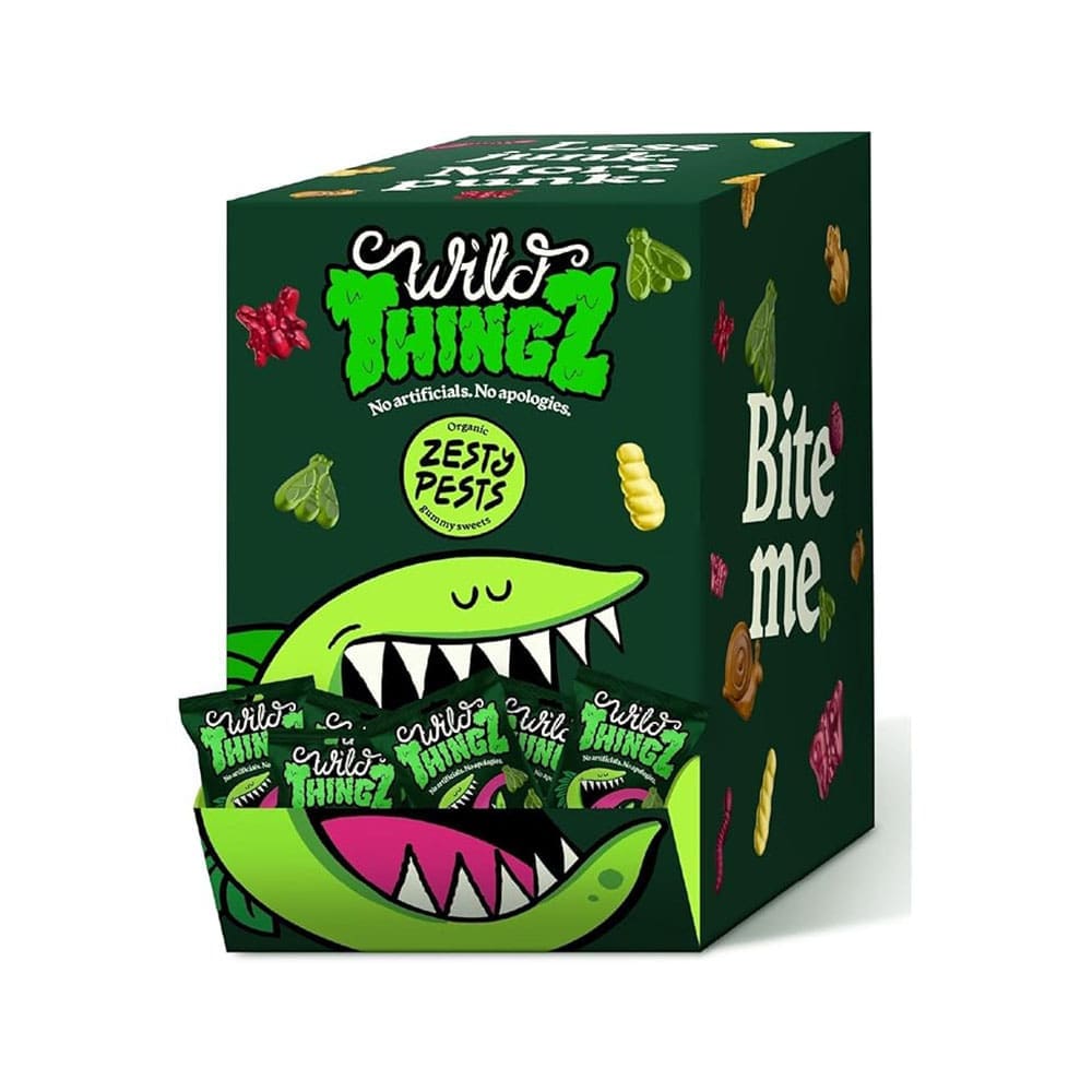 Wild Thingz Organic Vegan Sweets Gummy Grubs combine half the sugar with natural flavours in a fruity, plant-based gummy mix free from artificials. Supplied in 34x25g packs.