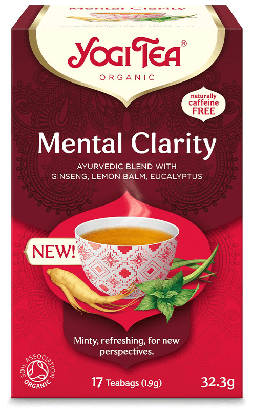 Yogi Organic Mental Clarity tea blends ginseng, eucalyptus, and mint to help boost focus and refresh your mind. Perfect for a natural energy lift.
