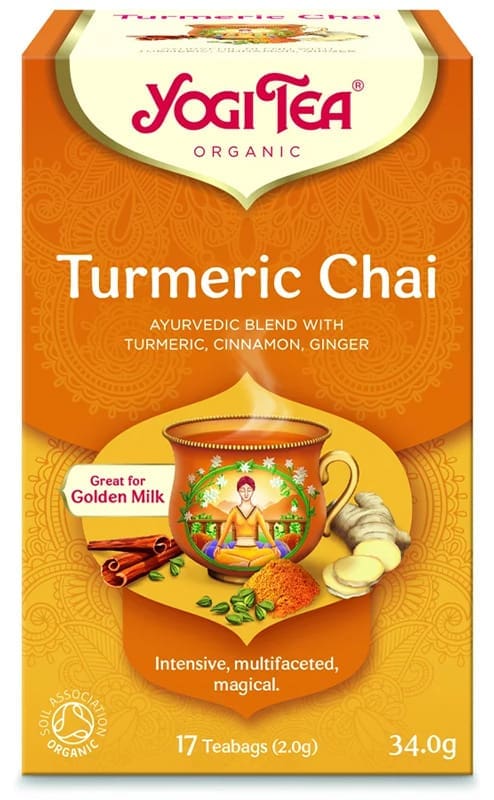 Yogi Organic Turmeric Chai is a spiced herbal tea blend ideal for cosy moments. Enjoy its warming, organic turmeric flavour served hot in convenient 6x17 sachets.