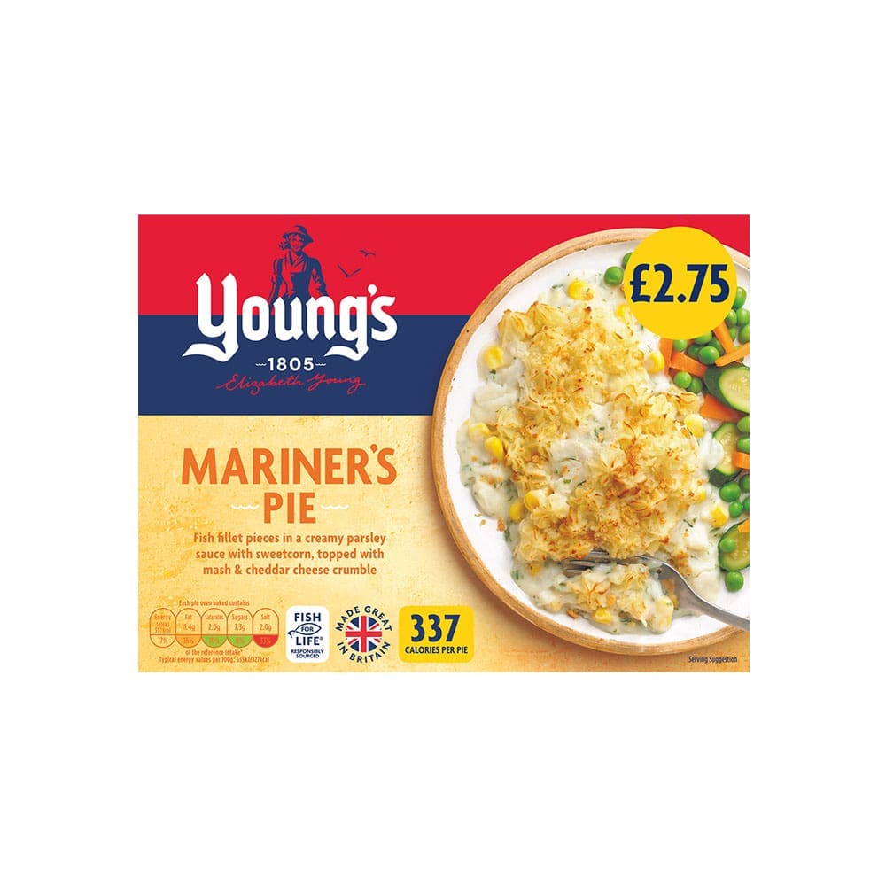 Partially Reconstituted Dried Potato (42%), Water, Alaska Pollock Fish) (15%), Sweetcorn (5%), Rapeseed Oil, Cream (Milk) (2.5%), Milk Proteins, Onion, Breadcrumb [Wheat Flour (Wheat Flour, Calcium Carbonate, Iron, Niacin (B3), Thiamin (B1)), Yeast, Salt], Cornflour, Wheat Flour [Wheat Flour, Calcium Carbonate, Iron, Niacin (B3), Thiamin (B1)], Cheddar Cheese (Milk) (0.5%), Seasoning [Salt, Yeast Extract, Sugar, Onion Powder, Cracked White Pepper, Mustard Powder, Dextrose, Spinach Powder, Wheat Flour (Wheat Flour, Calcium Carbonate, Iron, Niacin (B3), Thiamin (B1)), Sunflower Oil, Celery Extract, Mint], Parsley, Dextrose, Salt, Flavourings, Potato Starch.